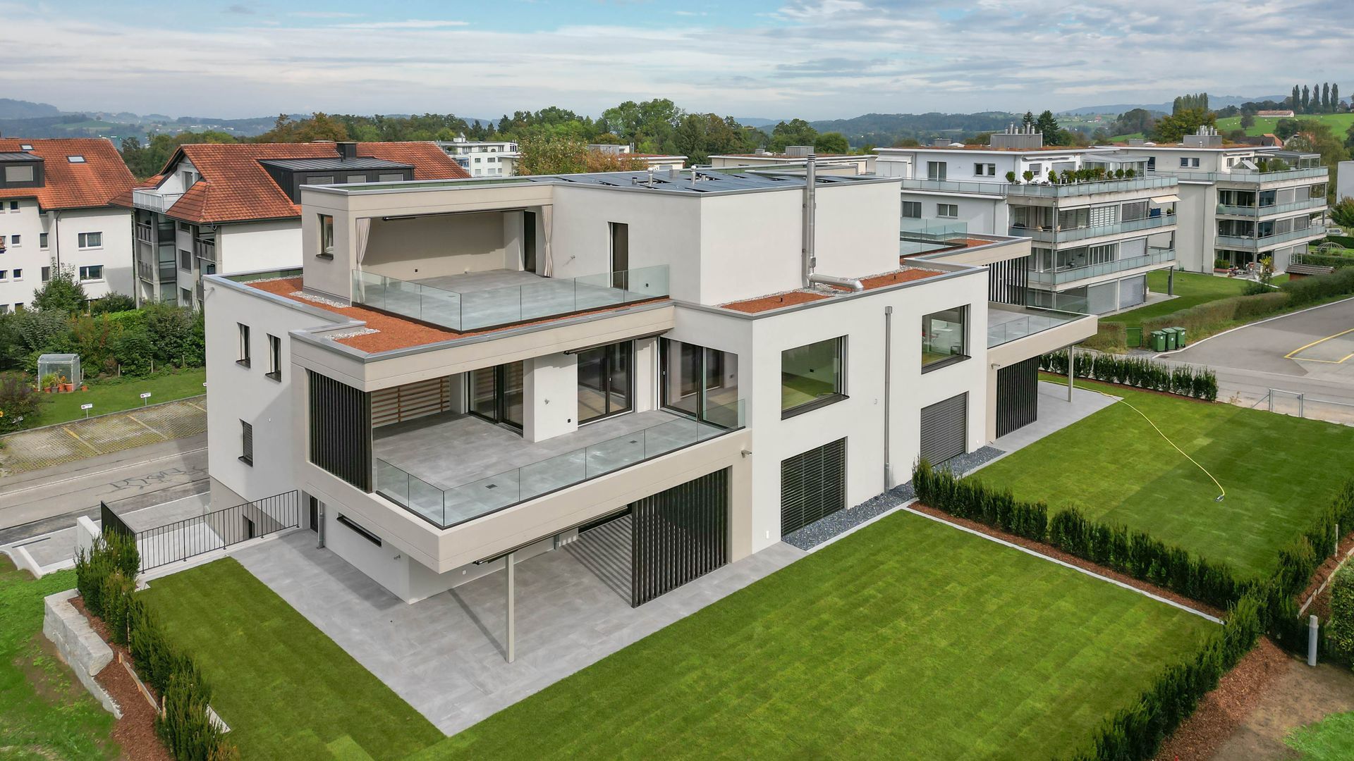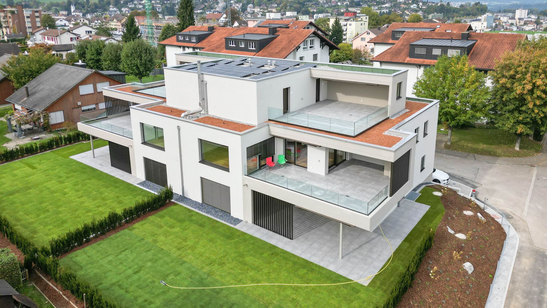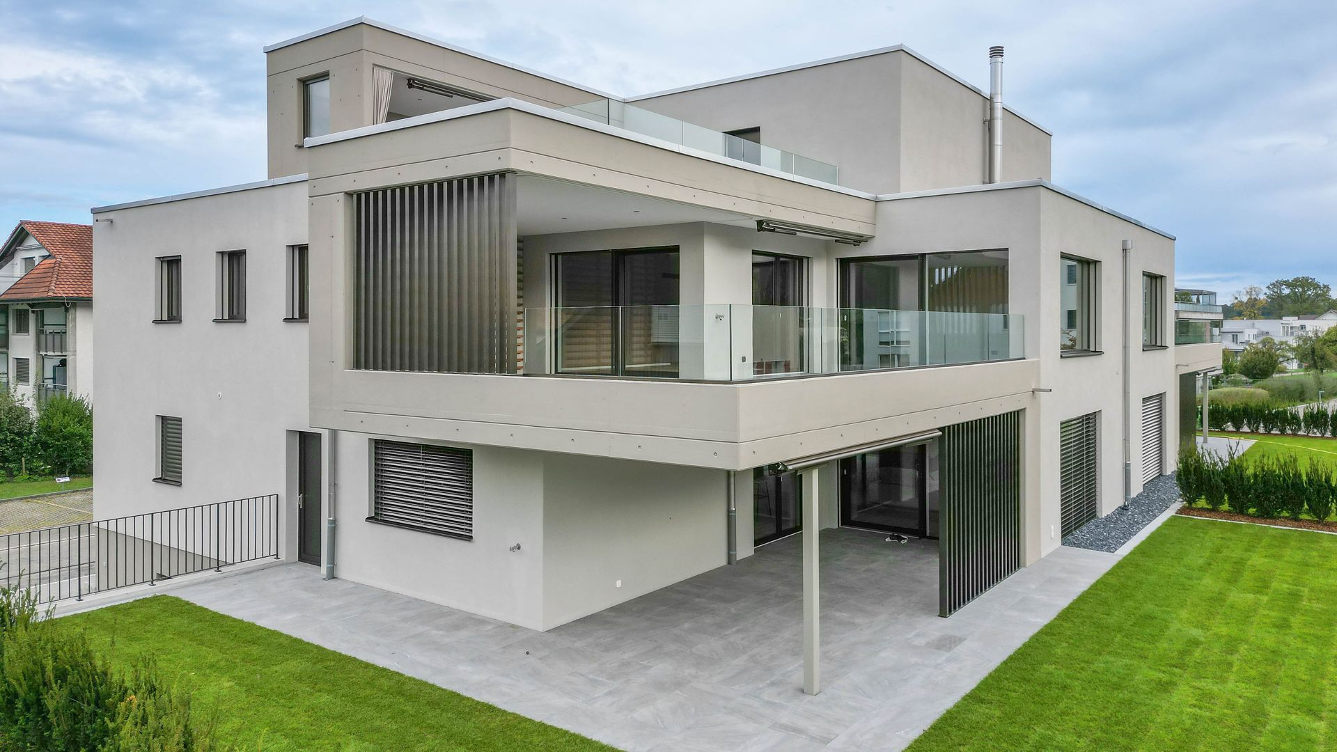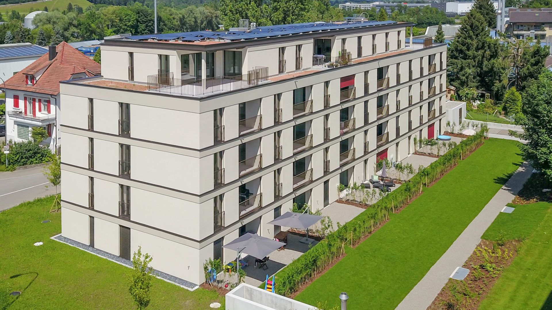 Bei den 3 Mehrfamilienhäusern haben wir mehr als 150 Vertikalstoren und 20 Fallarmmarkisen geliefert und montiert.